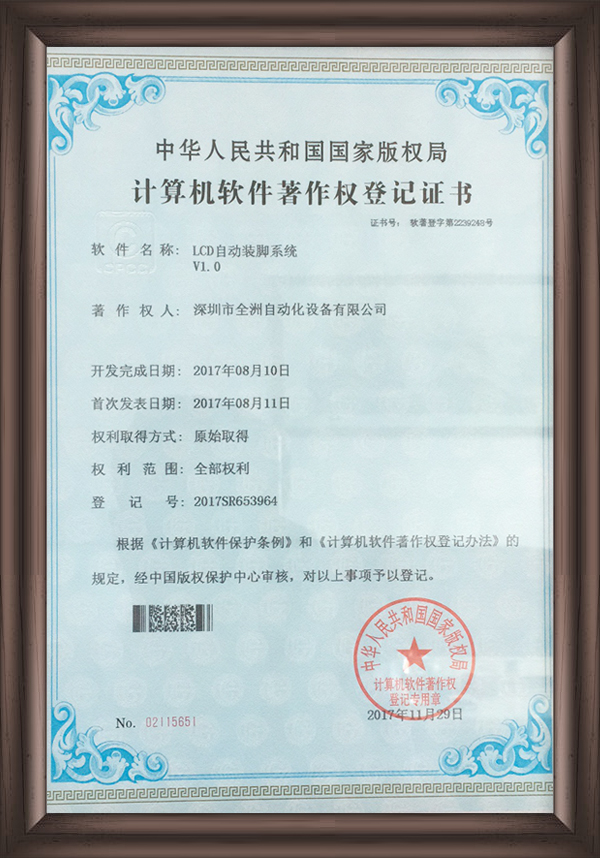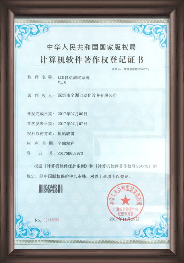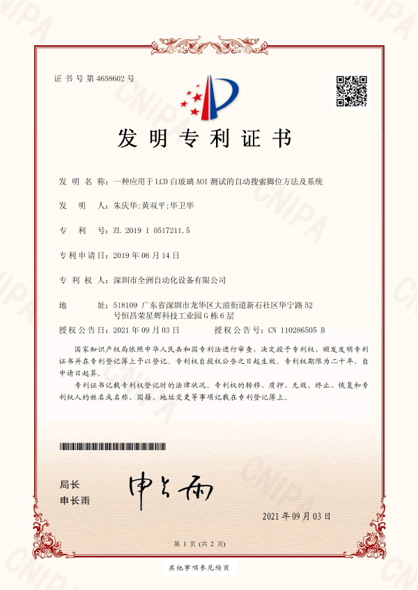 深圳市全洲自動(dòng)化設(shè)備有限公司是一家集研發(fā)、生產(chǎn)、銷(xiāo)售為一體的國(guó)家高新技術(shù)企業(yè),擁有一支強(qiáng)大、資深的技術(shù)研發(fā)團(tuán)隊(duì),及完善的生產(chǎn)、銷(xiāo)售服務(wù)隊(duì)伍。公司致力于LCD和半導(dǎo)體行業(yè)的智能制造,先后推出了全自動(dòng)貼片、裝腳、點(diǎn)膠、固化、切腳流水線,全自動(dòng)LCD AOI測(cè)試機(jī)、COG/COB自動(dòng)AOI測(cè)試機(jī)、TFT多畫(huà)面測(cè)試機(jī)。并破解行業(yè)難題,研發(fā)了分辨率達(dá)微米級(jí)的LCD整模圖像檢測(cè)機(jī)等高端設(shè)備,可應(yīng)用于LCD/TFT/集成電路/晶圓檢測(cè)等領(lǐng)域,有效提升生產(chǎn)和測(cè)試效率,保障產(chǎn)品品質(zhì)。受到了新老客戶的歡迎和好評(píng),與業(yè)內(nèi)眾多知名企業(yè)建立了長(zhǎng)期合作伙伴關(guān)系。公司秉承“誠(chéng)信經(jīng)營(yíng)、科技創(chuàng)新”的經(jīng)營(yíng)理念和“團(tuán)結(jié)、合作、進(jìn)取”的企業(yè)精神,竭誠(chéng)為客戶提供優(yōu)質(zhì)的產(chǎn)品,完善的技術(shù)服務(wù)!讓我們攜手,互利雙贏,共同發(fā)展,一起邁向企業(yè)美好的新未來(lái)、新坐標(biāo)!